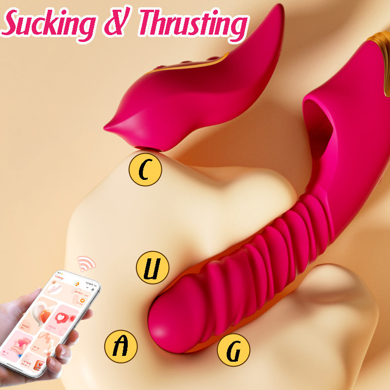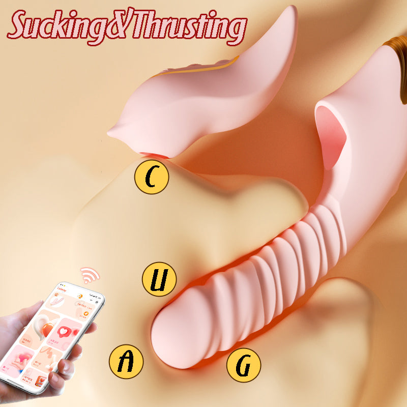 Featuring a detachable 2-in-1 design—an external suction stimulator and a penetrative thrusting vibrator—both usable separately or combined as a rabbit vibrator. The external stimulator offers 9 suction modes for clitoris, nipples, and other sensitive areas, while the penetrative one targets G-spots with 9 thrusting vibration modes—adapting to every mood and moment.