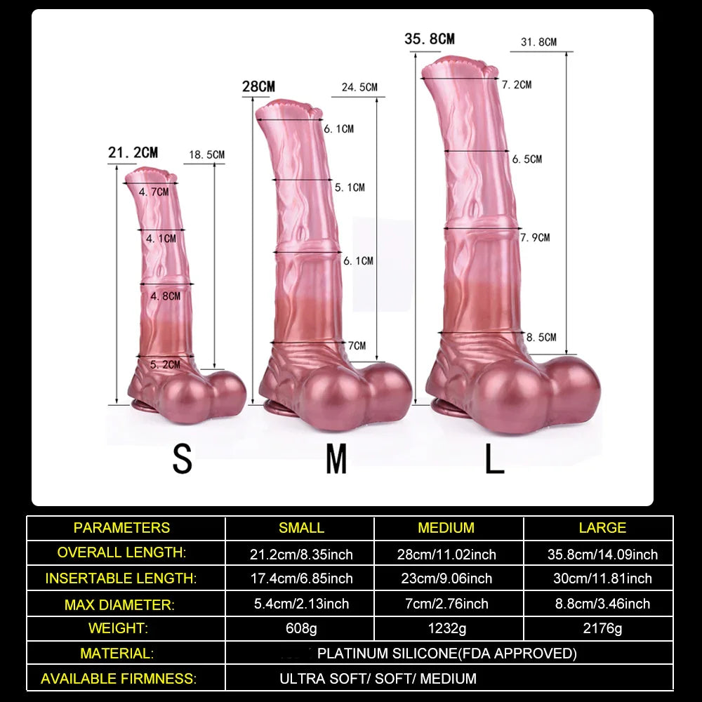 - Realistisch Ontwerp: Onze paardenspuwende dildo heeft een ongelooflijk realistisch ontwerp, zorgvuldig vervaardigd om de verfijnde details van de anatomie van een paard na te bootsen. Van de getextureerde aderen tot de taps toelopende punt, elk aspect is doordacht gecreëerd om je genot te vergroten.